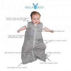 Why buy: • One layer of fabric, ideal for warm weather • Creates a safe sleeping environment - no sheets or blankets • With YKK full-length zipper • Closed zipper insert protects the baby's chin • Heat rating: 0.5 tog Features and Benefits: Material: absorbent and soft lightweight 100% cotton Available in 2 sizes: 50 - 62 cm for newborns up to 6 months old and 68 - 80 cm for children from 6 months to 12 months Safety tested: product (BS 8510) and fabric use Care instructions: machine wash