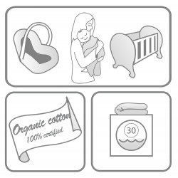 • Machine wash 30 according to instructions on care label. Lay flat to dry.