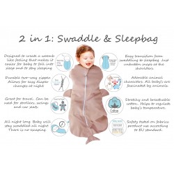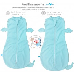Wallaboo Swaddle guļammaiss ir drošs un dabisks veids, kā ietīt jūsu mazuli. Vecāki novērtē vienkāršību – nav liplentu, atloku vai papildu audumu, ar ko rīkoties. Izmantojiet ietīšanai: rokas iekšpusē. Izmantojiet kā guļammaisu: atlaidiniet rokas. Ietver četras mīļu dzīvnieku rakstzīmes, no kurām izvēlēties. 100% mīksta kokvilna, kas ideāli piemērota ietīšanai. Pieejams divos izmēros: izmērs S un izmērs M.