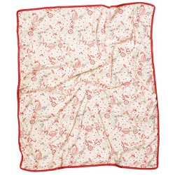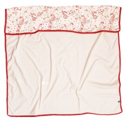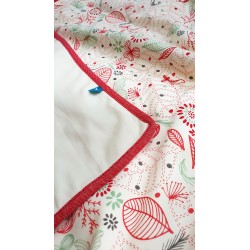 Плед для новорожденного прямоугольной формы. Хлопок с принтом в виде птиц и листьев на внутренней стороне.