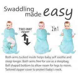 • Двухсторонние молнии YKK позволяют ребенку оставаться пеленанным во время смены подгузников